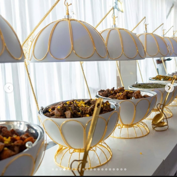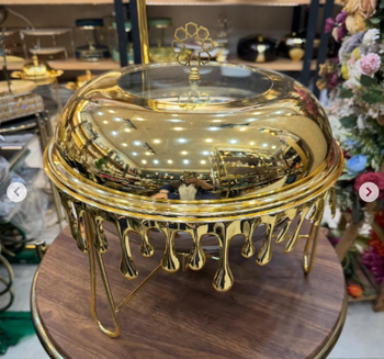 Floral Pattern Luxury Dining Table Chaffing Dish with Hanging Brass Flowers Antique Silver Finish Stainless Steel Sustainable 5L